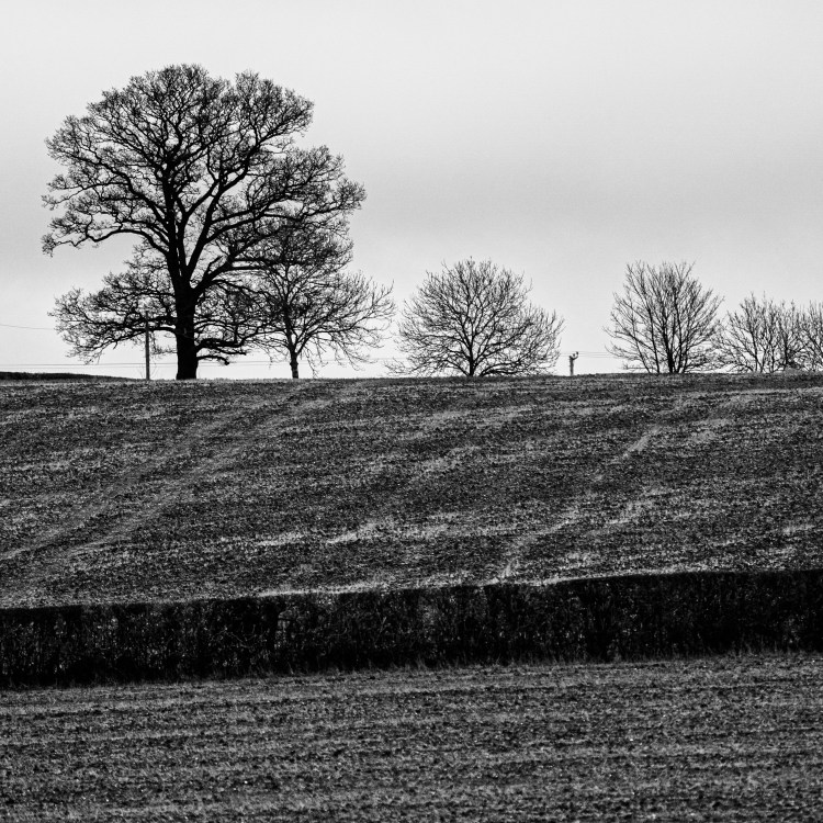 I live in a small village surrounded by flatish farmland in Suffolk. In the spring and summer it is colourful and alive and there is enough woodland to make autumn just as easy on the eye. Winter however is bleak – not perhaps Yorkshire moors bleak but bleak enough that on the right (or wrong) day it can feel cold and despairing and almost monochrome. It was then that I realised that black and white should work well for my images and hopefully convey a sense of edginess and despair. I deliberately avoided houses and people to amplify the emptiness and unease you might get if you were walking here on your own. Bare winter trees and grey skies add to the feeling of unease and on my walk the only other constant was the noise and sight of the crow – highly intelligent fantastic animals but another way to unnerve a lone walker. It was interesting to me that walking cleared my head and let the surroundings, nature and weather dictate how I felt. I wonder how different the images would have been had I started this project in another season. Perhaps this is something to return to three more times.