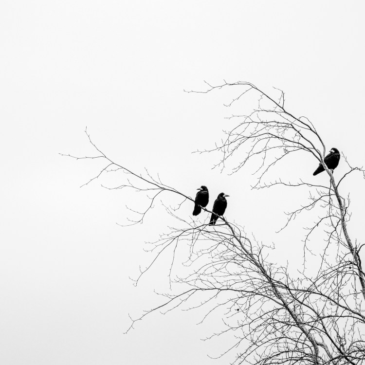 Not quite a murder. Crows were everywhere on this part of the walk. All three survey their own individual patch and add an air of menace to the image. Another use of negative space though I have kept the sky grey rather than white. I would have preferred the crows to be more compliant with the rule of thirds but this would have introduced a mess of branches that I didn’t want.