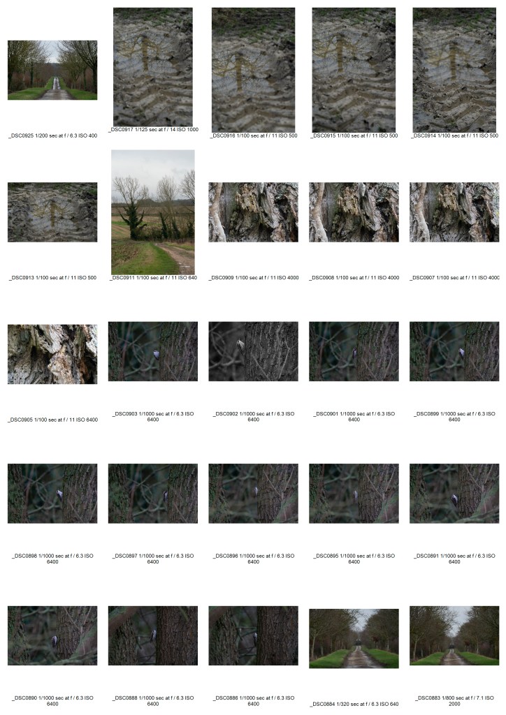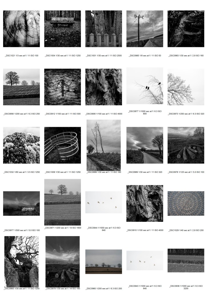 In the end I took around 125 images for the project. Some were just random shots I took because I saw a bird (tree creeper or a small flock of partridges) and thought they might fit in later though truthfully it was more because I am a bit of a birder. Others I took of objects I’d normally ignore striving to find something ‘different’ to photograph but quickly discarding them. In the end the candidate photos that were discarded were left out either because they didn’t follow the darker theme enough or because the focal point of the image was of a man made object. I also deliberately left out a few landscape images because to take a dozen or so of those would have been too easy.