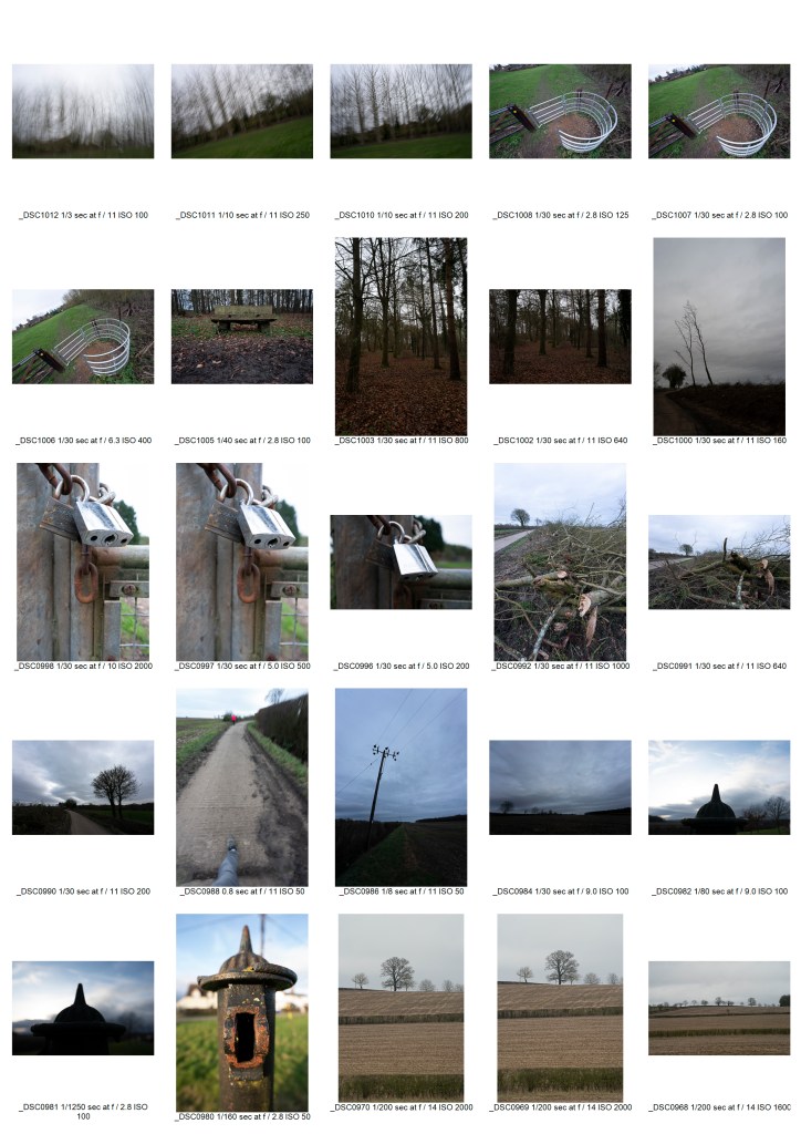 I liked the two obvious horizontal lines roughly following thirds and emphasised the smaller furrows in the soil in post processing. Ideally the larger tree would be on it’s own. I chose it as the first image as it’s the only proper ‘landscape’ and starts the ‘walk’ with something familiar. This was taken with a zoom lens to give the desired compression of the image.