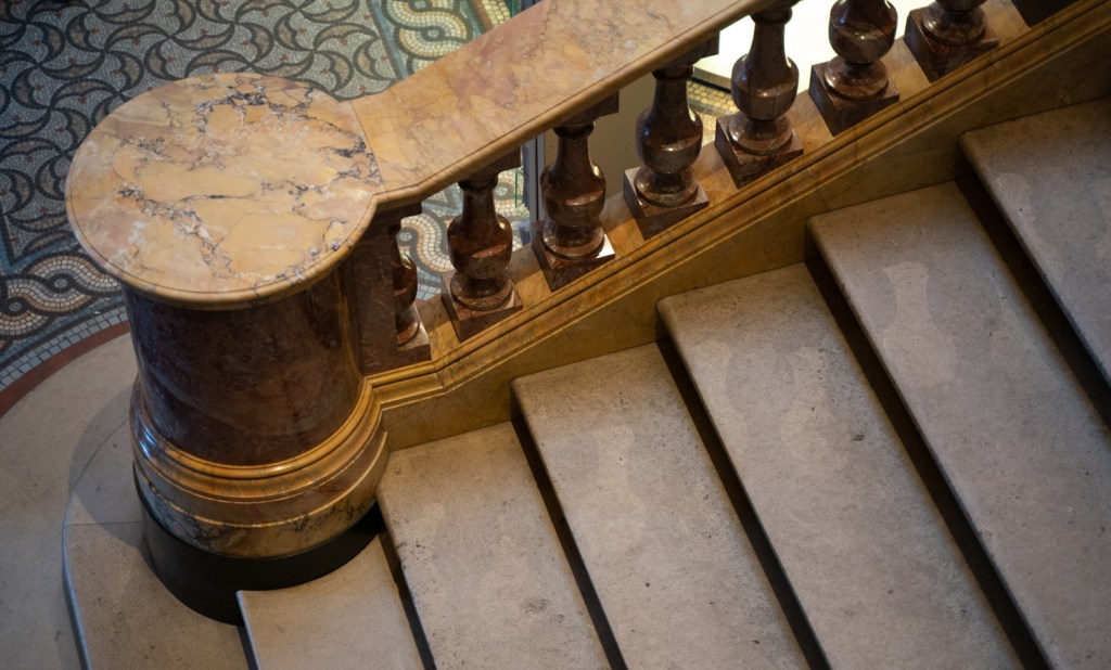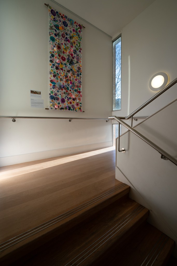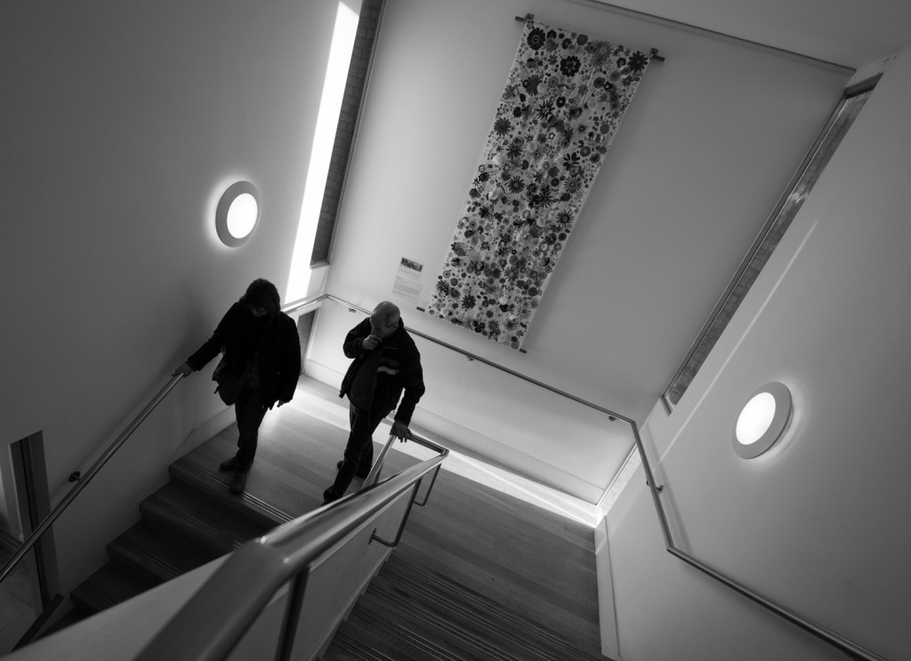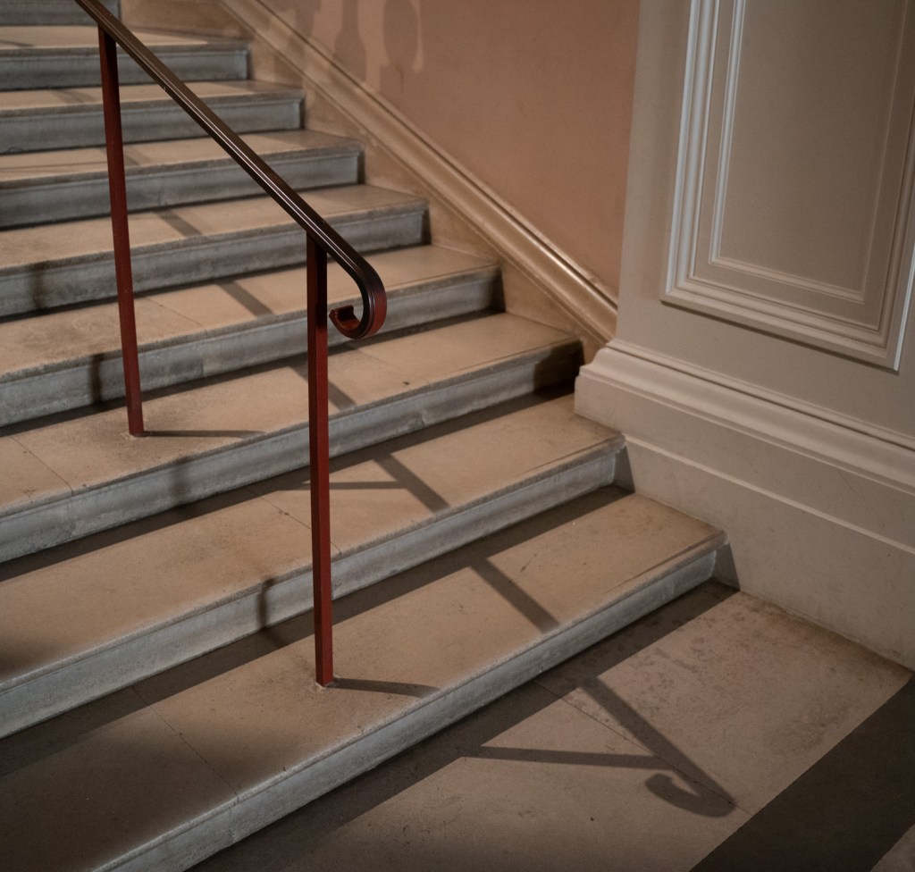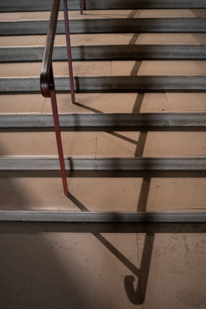 I think this is my favourite image from the lesson and proof that thinking about the brief and getting out and shooting can get the creativity flowing. I love the balance of the image and the subtle colour. From memory I focused on the handrail and the camera has gone for 2.8 as it’s in very low light hence iso 4000. This has softened the stairs a little which for me adds to the image.