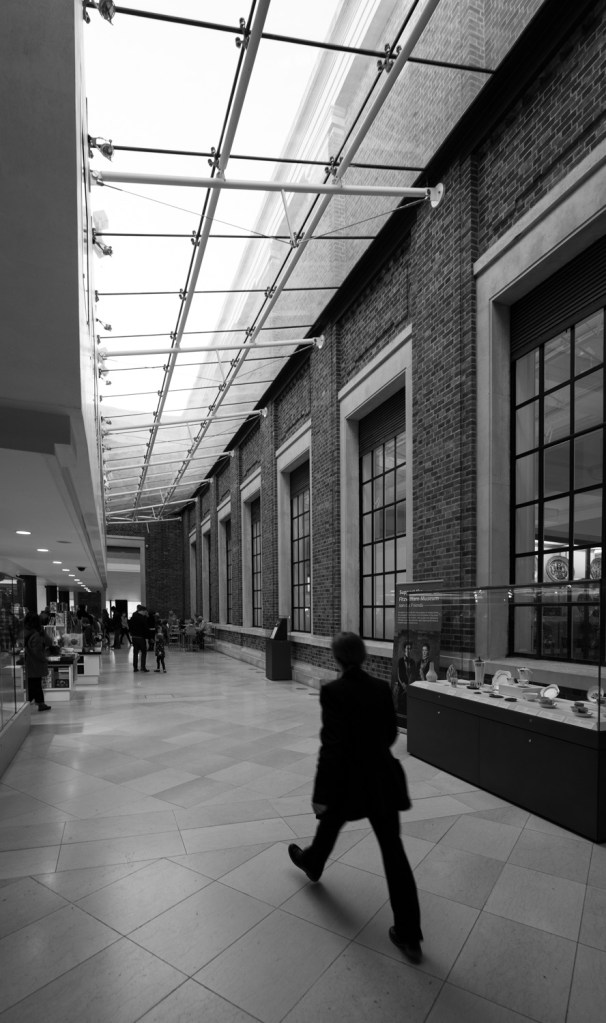 I waited here until someone walked through as I wanted to capture their stride which creates another line to add to the lights the windows leading you into the image. The ultra wide angle lens has helped emphasise and almost caricature the man’s legs and exaggerates the perspective.