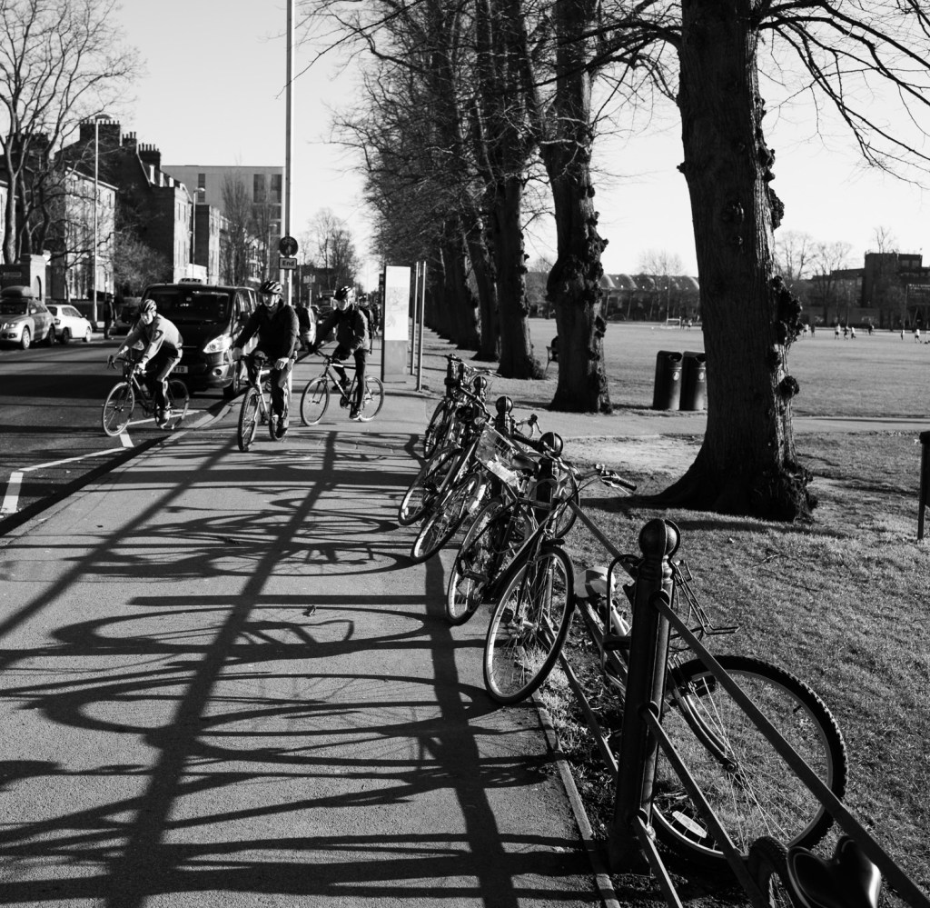 I don’t think this is a great shot but I liked the two sets of bikes and the shadows from the railings help to give depth and remind me of lanes that the bikes are racing down.