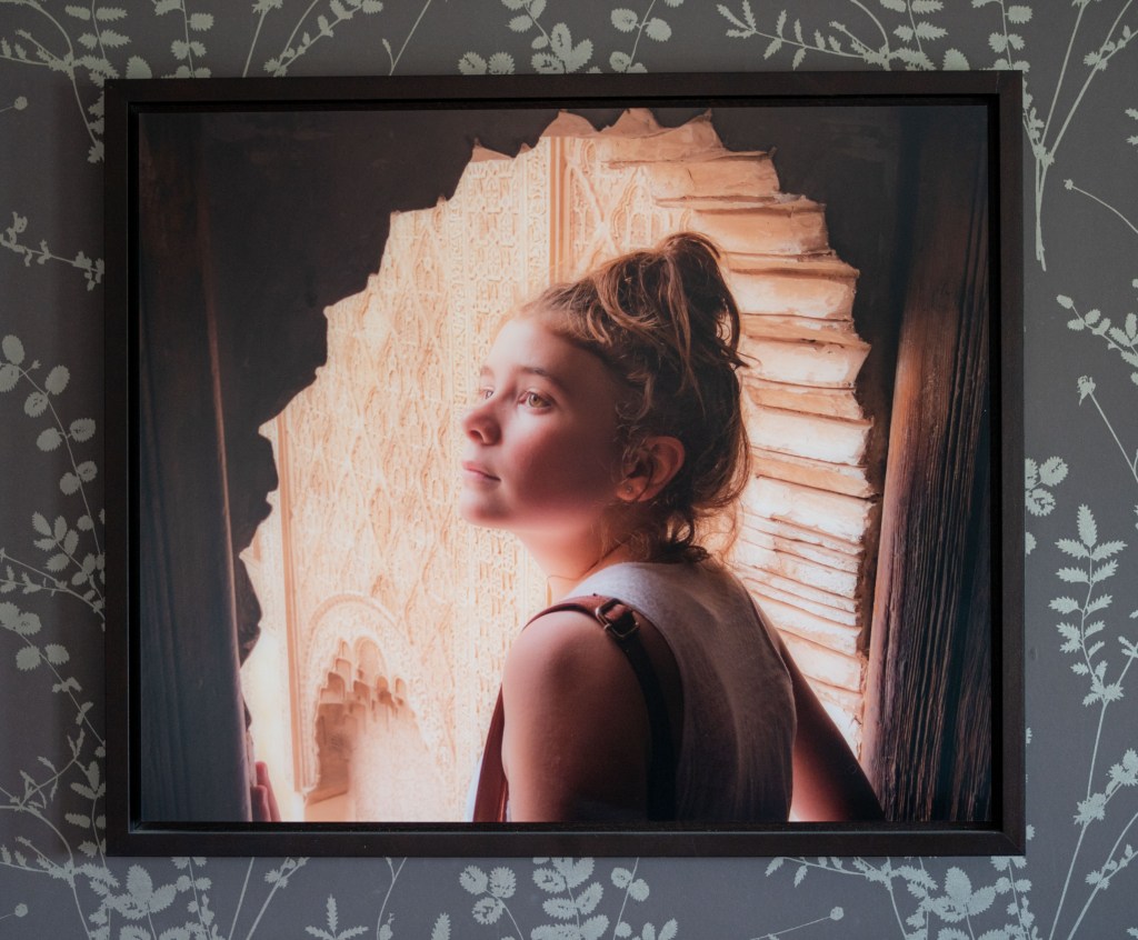 I didn’t really like the results – I prefer the first version as a photo, the second one I tried to make more dreamlike but I don’t really think the crop is successful. Unperturbed by this I started thinking about how to show depth from an existing flat image whilst still using zoom. I have an oil painting in my kitchen that I thought would make a good subject as it’s large enough to really get some detail of the actual brush strokes and at the same time hopefully show elements of depth by using a shallow aperture and an upwards (tilt and shiftish) angle to give depth where there is none. I definitely prefer this to the above efforts and so the following is my final image to add to the sequence at the start.
