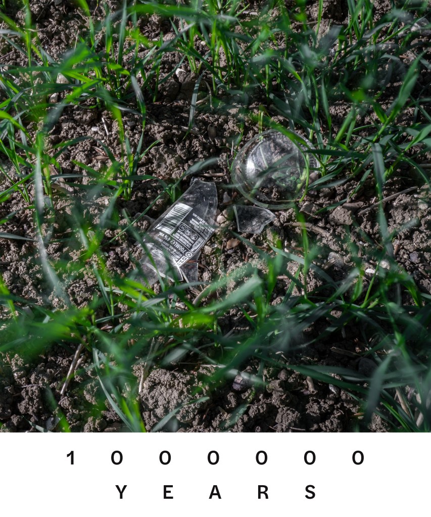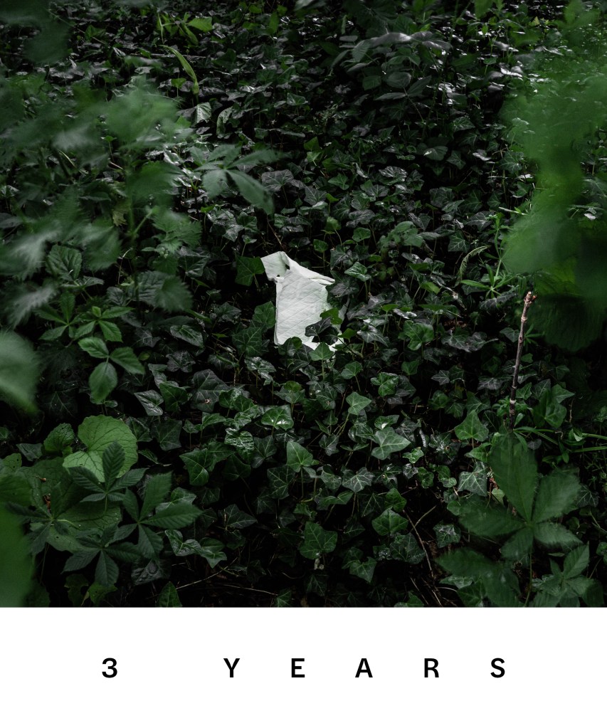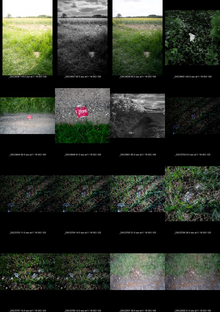 For this assignment my thoughts kept coming back to how long this discarded material will be left behind and when I investigated this shocked me. I’ve included the estimated number of years each item will take to rot as part of each title which to the best of my knowledge is accurate. I decided that I also wanted to show that whilst time is moving on this detritus will be still be here unless we do something about it. In order to achieve this I utilised a 10 stop ND filter to give me longer shutter speeds to introduce some blurring but also used a small f stop – f16 – to give me a larger depth of focus and longer shutter speeds. I have used different ISO’s starting at 100 and upto 1000 as sometimes correct exposure at a low ISO would have been ridiculously long shutter speeds – when in the woods for example. All images were taken using manual focus and focus peaking to ensure that most of the frame was in focus. I also used a remote shutter release with shutter speed being a mix of trial and error and again manual. The net effect of these longer shutter speeds is subtle in some images (perhaps just a blade of grass or two) and more obvious in others but I think it is an important part of the image even if it’s not always so visibly obvious.