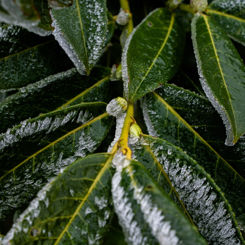 glistening frost covers trees
